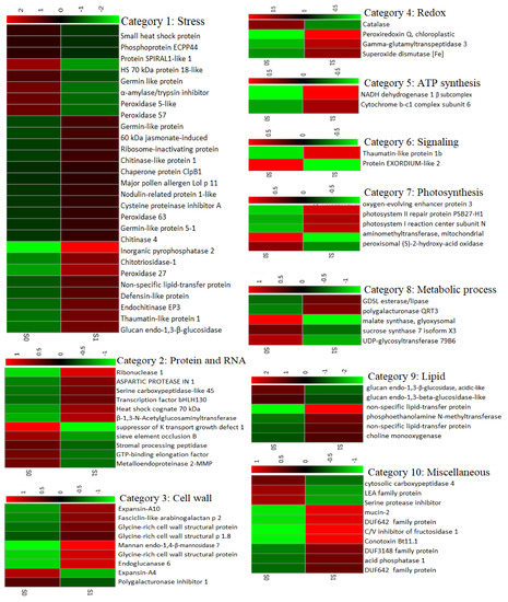 3.8. Proteins Downregulated in Sugar Beet GCs in Response to Salinity