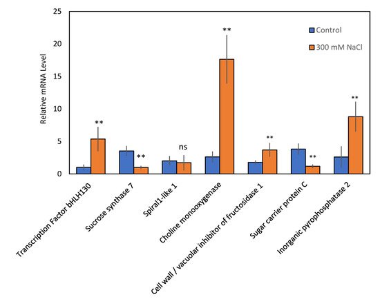 2.4. Transcription-Level Analysis of Genes Corresponding to Proteins Modulated in Salt-Stressed Guard Cells