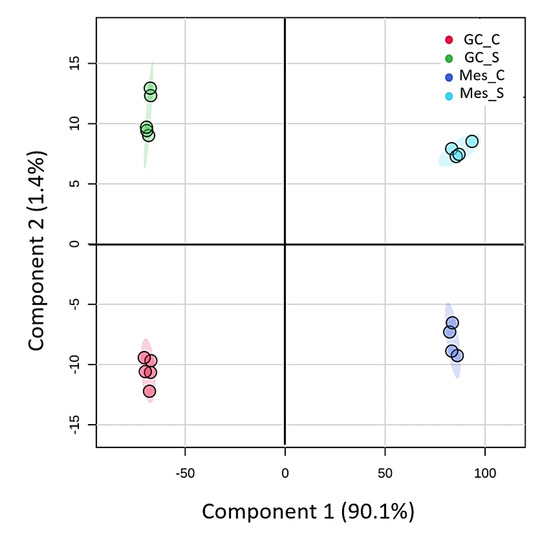 2.2. Comparison of Ground State Mesophyll and Guard Cells Proteome