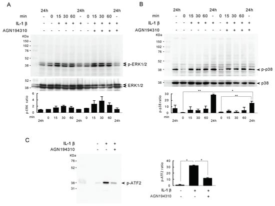 2.4. Analysis of the Actions of the RAR Inverse Agonist AGN194310 on IL-1β-Induced Mitogen-Activated Protein Kinase (MAPK)