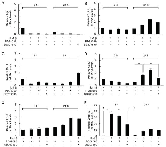 2.5. Analysis of the Inhibition of Mitogen-Activated Protein Kinase (MAPK) on IL-1β Modulated Genes