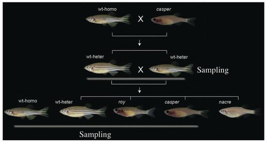 Bian, C.; Chen, W.; Ruan, Z.; Hu, Z.; Huang, Y.; Lv, Y.; Xu, T.; Li, J.; Shi, Q.; Ge, W. Genome and Transcriptome Sequencing of casper and roy Zebrafish Mutants Provides Novel Genetic Clues for Iridophore Loss. Int. J. Mol. Sci. 2020, 21, 2385. https://doi.org/10.3390/ijms21072385