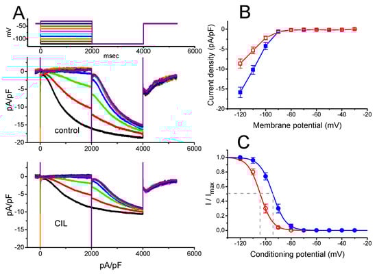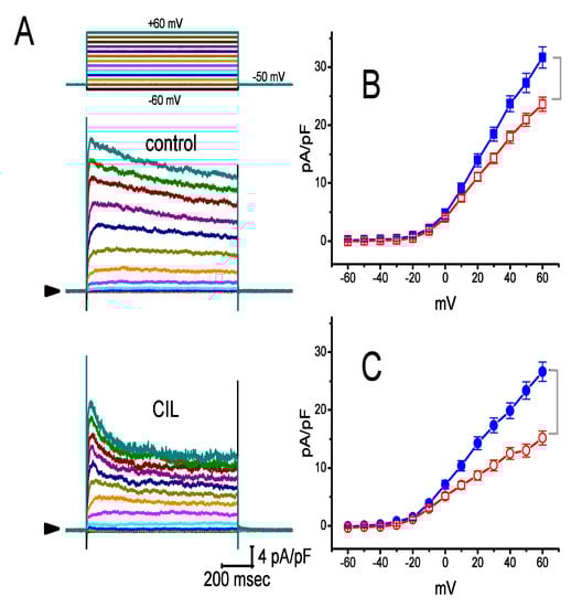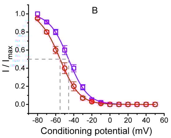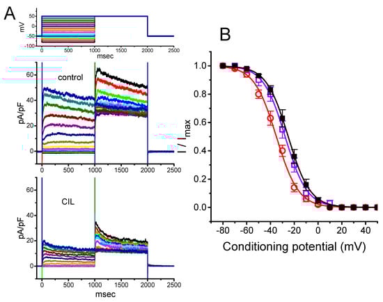2.5. Steady-State Inactivation Curve of IK(DR) Obtained in the Presence of CIL