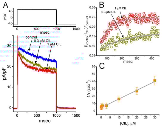 2.4. Kinetic Evaluation of the CIL-Inhibited IK(DR) Observed in GH3 Cells