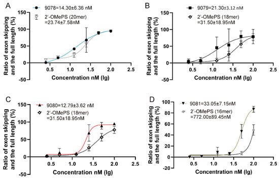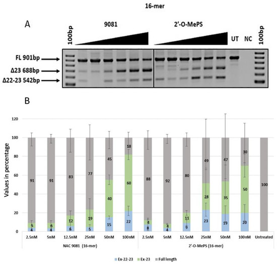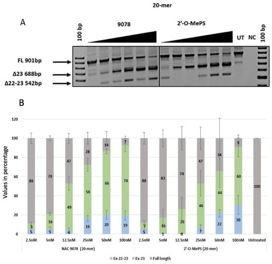 2.1. Evaluation of α-l-LNA AOs to Induce Exon-23 Skipping