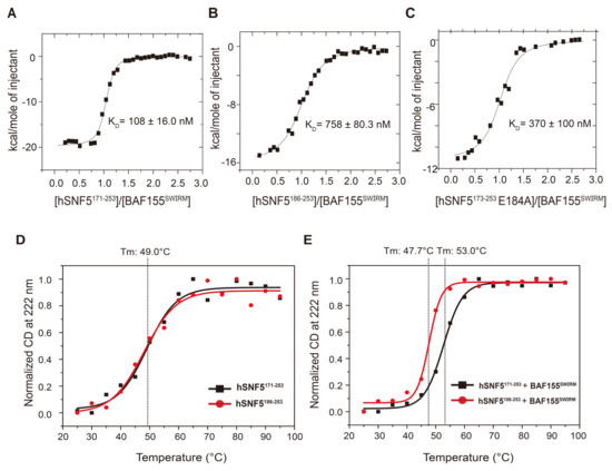 Han, J.; Kim, I.; Park, J.-H.; Yun, J.-H.; Joo, K.; Kim, T.; Park, G.-Y.; Ryu, K.-S.; Ko, Y.-J.; Mizutani, K.; et al. A Coil-to-Helix Transition Serves as a Binding Motif for hSNF5 and BAF155 Interaction. Int. J. Mol. Sci. 2020, 21, 2452. https://doi.org/10.3390/ijms21072452