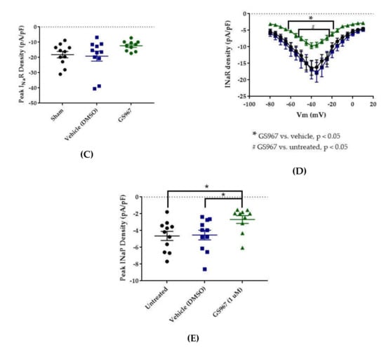 2.2. GS967 Effects on INaT, INaR, and INaP