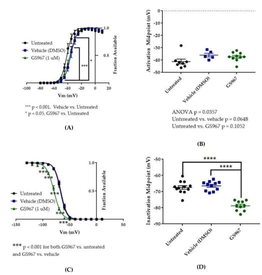 - Potet, F.; Vanoye, C.G.; George, A.L., Jr. Use-Dependent Block of Human Cardiac Sodium Channels by GS967. Mol. Pharmacol. 2016, 90, 52–60. [Google Scholar] [CrossRef]