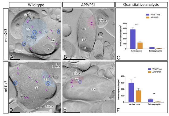 All authors had full access to all data in the study and take responsibility for the integrity of the data and the accuracy of the data analysis. R.L. and Y.F. designed the project; A.M.-B., R.L. and Y.F. performed SDS-FRL immunoelectron microscopy; A.M.-B., R.A.-R. and A.E.M.-M. performed light microscopy immunohistochemistry; L.d.l.O. developed in-house software and performed computational analysis; R.S. provided reagents and feedback on the quantitative analysis; J.M.-H. and A.B. provided APP/PS1 and WT tissues and feedback on the manuscript; A.M.-B., R.A.-R., C.A. and R.L. analysed data; R.L. wrote the paper. All authors have read and agreed to the published version of the manuscript.