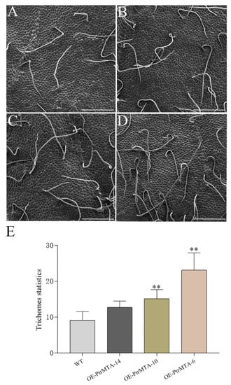 2.3. Overexpression of PtrMTA Affected Trichome Development