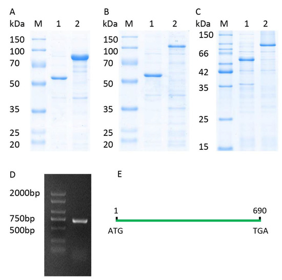 4.9. Recombinant Protein Expression in E. coli