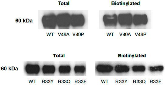 3.3. Interaction between TM1 Arginine at Position 33 and TM2 Aspartic Acid at Position 354 in Channel Functioning
