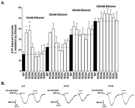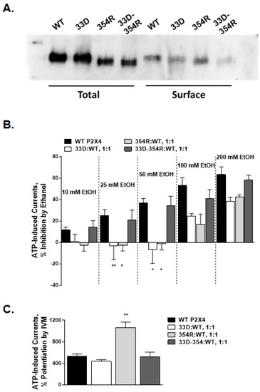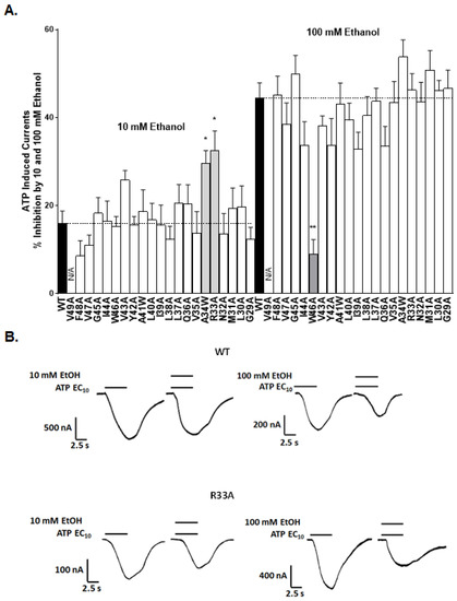 2.3. Physical-Chemical Properties of Residues at Position 33 Determine Receptor Function and Ethanol Sensitivity