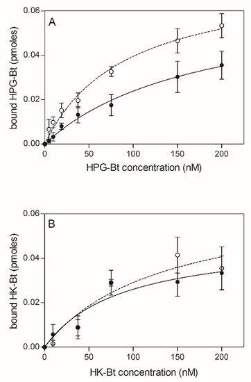 For the biotinylation of human proteins, 100 µg aliquots of HPG or HK proteins (Enzyme Research Laboratories, South Bend, IN, USA) were incubated for 4 h at 4 °C in 250 µL of 0.1 M NaHCO3 buffer with 2 µL of biotin N-hydroxysuccinimide ester (NHS-biotin; Sigma) dissolved in dimethylformamide (1 mg/100 µL). The proteins were then dialyzed against PBS buffer, pH 7.4 for 48 h.