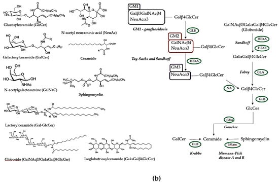 - Platt, F.M. Sphingolipid lysosomal storage disorders. Nature 2014, 510, 68–75. [Google Scholar] [CrossRef] [PubMed]