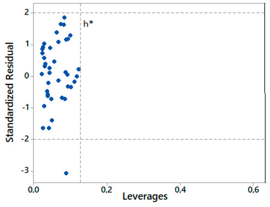To identify both the chemicals that are outside the AD and the leverage points which could destabilize the model, the Williams plot can be used. The plot is presented in