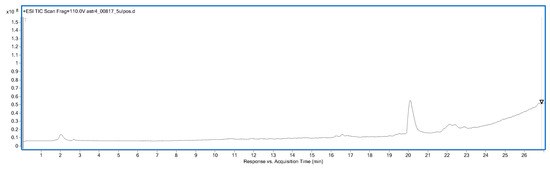 The qualitative and quantitative analyses of the plant extract, obtained fractions, purified compounds, biological samples, and the analytical standards were performed using an Agilent Technologies (Santa Clara, CA, USA) mass spectrometer (ESI-Q-TOF-MS, 6500 Series) with a high performance liquid chromatograph (HPLC), also by Agilent Technologies (1200 Series, Santa Clara, CA, USA), equipped with a binary pump, solvent degasser, thermostated column chamber, autosampler, and a PDA detector. The analyses were performed using spectroscopic purity solvents (acetonitrile, water, and formic acid; J.T. Baker).
