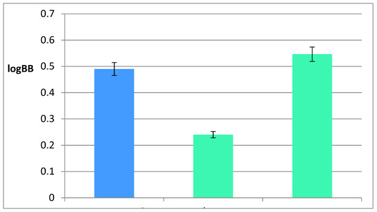 Figure 7). The closest logBB value to the value obtained experimentally for the mouse brain tissues is that obtained from the Equation (2) (the absolute error is equal to 0.056). Therefore, it can be seen that the second model corresponds to the value obtained in vivo. Based on the analysis of variance (