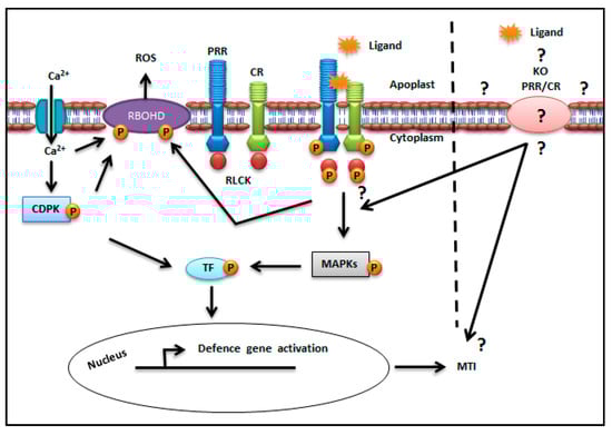 - Ranf, S. Sensing of molecular patterns through cell surface immune receptors. Curr. Opin. Plant Biol. 2017, 38, 68–77. [Google Scholar] [CrossRef] [PubMed]