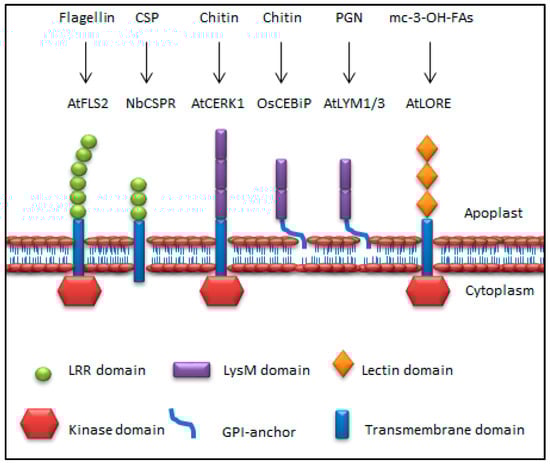 | LORE | ![]() | RLK | lore | Recognition of mc-3-OH-FAs | [93,129] |