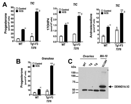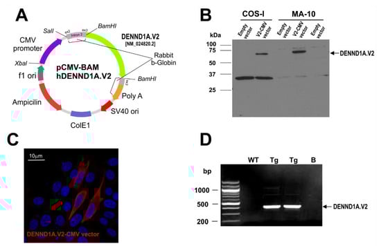 2.1. hDENND1A.V2 Induces a PCOS Phenotype in Mouse Leydig MA-10 Cells—Evidence to Support a hDENND1A.V2 Mouse Model for PCOS