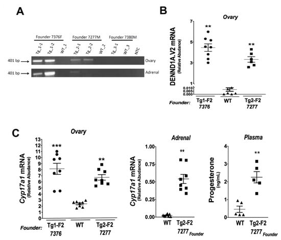 Human DENND1A.V2 Drives Cyp17a1 Expression and Androgen Production in Mouse Ovaries and Adrenals