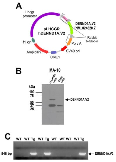 4.4. Generation of Lhcgr-hDENND1A.V2 Transgenic Mice