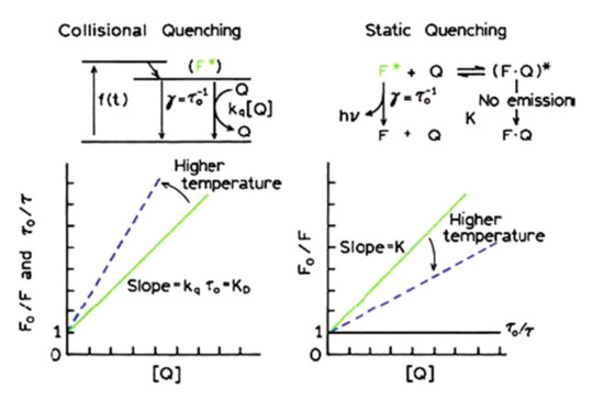 Comparison between static and dynamic (collisional) quenching (with permission from Lakowicz, [88]).