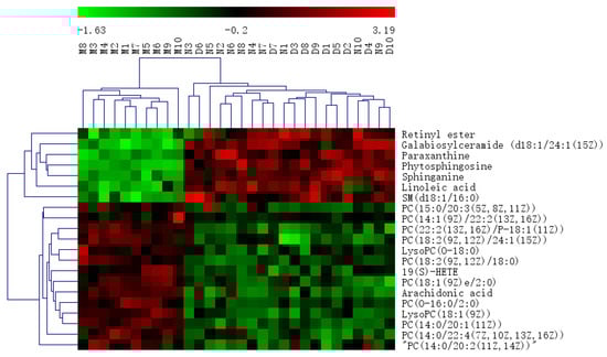 | 16a | 24.68 | 806.5672 | PC(14:1(9Z)/22:2(13Z,16Z)) | 1.87 | C44H82NO8P | M+Na | −0.50 | HMDB0007921 | AM, LM,GlyM [24,25,26] | CD<CM |
