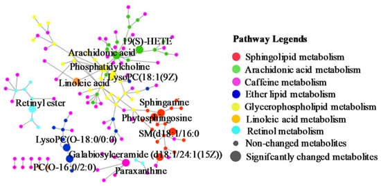 | Sphingolipid metabolism (SphM) | 4/21 | 1.8325 × 10−5 | 10.9070 | 0.0015 | 0.0015 | 0.1968 |