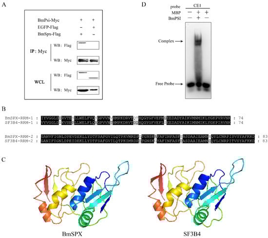 2.3. BmSPX Probably Acts as a Spliceosomal Component to Regulate Alternative Splicing of Bmdsx