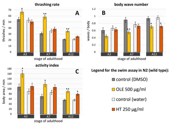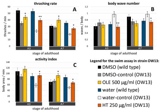 3.1. HT and OLE Boost the Health, but not Necessarily the Lifespan, of Wild Type C. elegans