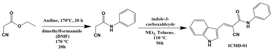 Synthesis of (E)-2-cyano-3-(1H-indol-3-yl)-N-phenylacrylamide—ICMD-01.