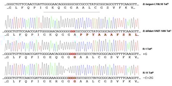 - Gueimonde, M.; Flórez, A.B.; van Hoek, A.H.; Stuer-Lauridsen, B.; Strøman, P.; de los Reyes-Gavilán, C.G.; Margolles, A. Genetic basis of tetracycline resistance in Bifidobacterium animalis subsp. lactis. Appl. Environ. Microbiol. 2010, 76, 3364–3369. [Google Scholar] [CrossRef] [PubMed]