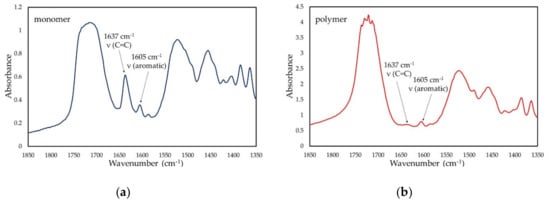 The representative FTIR spectra of the DM: (a) monomer and (b) polymer.