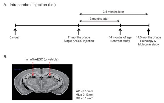 2.1. Intracerebral Transplantation of hAESCs into Tg2576 Transgenic Mice