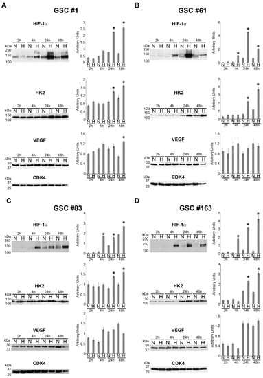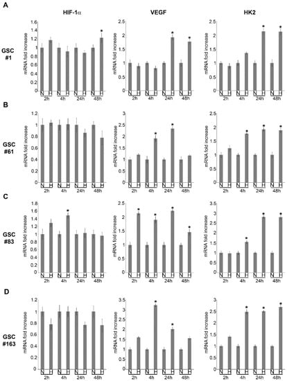 2.1. HIF-1α and HIF-1α-Dependent Gene Expression in GSCs