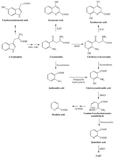 - Vecsei, L.; Szalardy, L.; Fulop, F.; Toldi, J. Kynurenines in the CNS: Recent advances and new questions. Nat. Rev. Drug Discov. 2013, 12, 64–82. [Google Scholar] [CrossRef]