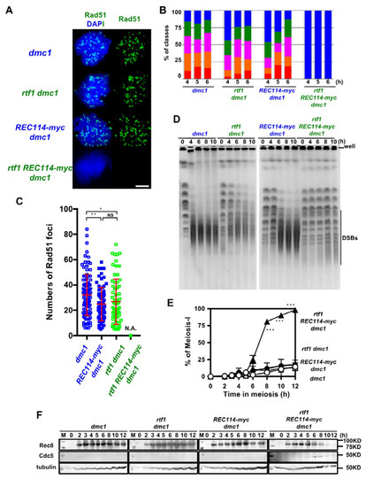 2.7. The rtf1 and REC114-myc Alleviates dmc1 Arrest