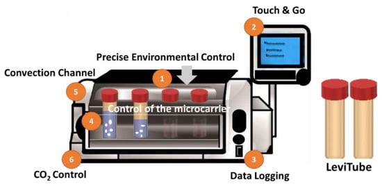 The bench-top incubator BioLevitatorTM which provides 3D static and dynamic culture system in 50 mL centrifuge tubes (LeviTubes™).