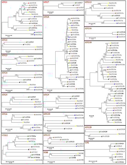 - Shangguan, L.F.; Fang, X.; Chen, L.D.; Cui, L.W.; Fang, J.G. Genome-wide analysis of autophagy-related genes (ARGs) in grapevine and plant tolerance to copper stress. Planta 2018, 247, 1449–1463. [Google Scholar] [CrossRef] [PubMed]