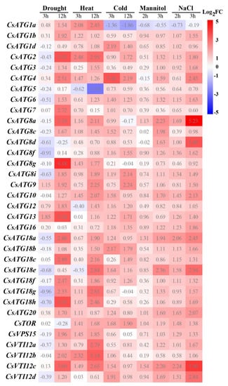 2.3. Expression Patterns of CsATGs Under Abiotic Stresses