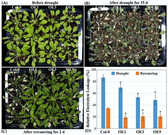 - Li, B.; Liu, G.Y.; Wang, Y.Q.; Wei, Y.X.; Shi, H.T. Overexpression of banana ATG8f modulates drought stress resistance in Arabidopsis. Biomolecules 2019, 9, 814. [Google Scholar] [CrossRef] [PubMed]