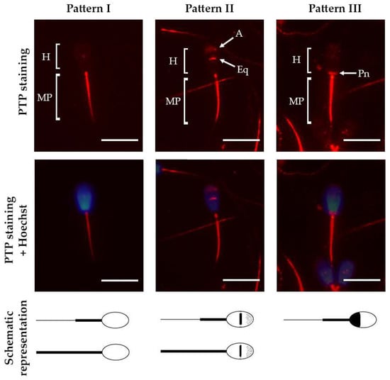 - Arai, M.M.; Minami, K.; Ogura, Y.; Otsuka, N.; Hama, S.; Harayama, H.; Sakase, M.; Fukushima, M. Variation among individual bulls in the distribution of acrosomal tyrosine-phosphorylated proteins in epididymal and ejaculated spermatozoa. Reprod. Fertil. Dev. 2017, 29, 1297–1305. [Google Scholar] [CrossRef] [PubMed]