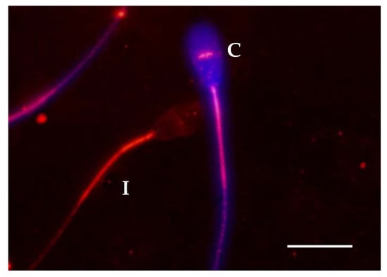 - Bucci, D.; Galeati, G.; Tamanini, C.; Vallorani, C.; Rodriguez-Gil, J.E.; Spinaci, M. Effect of sex sorting on CTC staining, actin cytoskeleton and tyrosine phosphorylation in bull and boar spermatozoa. Theriogenology 2012, 77, 1206–1216. [Google Scholar] [CrossRef]