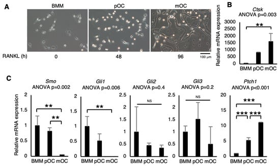 2.1. Changes in Expression of Hedgehog (Hh) Signaling-Related Genes during Osteoclast Differentiation