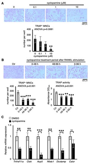 2.2. Cyclopamine Suppresses Osteoclastogenesis