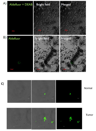 - Huang, E.H.; Hynes, M.J.; Zhang, T.; Ginestier, C.; Dontu, G.; Appelman, H.; Fields, J.Z.; Wicha, M.S.; Boman, B.M. Aldehyde dehydrogenase 1 is a marker for normal and malignant human colonic stem cells (SC) and tracks SC overpopulation during colon tumorigenesis. Cancer Res. 2009, 69, 3382–3389. [Google Scholar] [CrossRef] [PubMed]