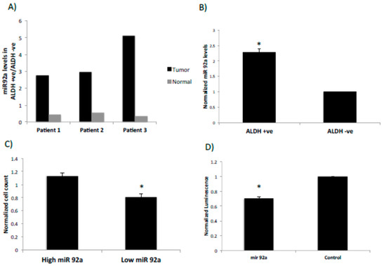 2.3. miRNA92a Shows Differential Expression in ALDEFLUOR-Positive Cancer Stem Cells and Targets the LRIG1 Stem Cell Marker Gene