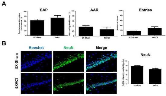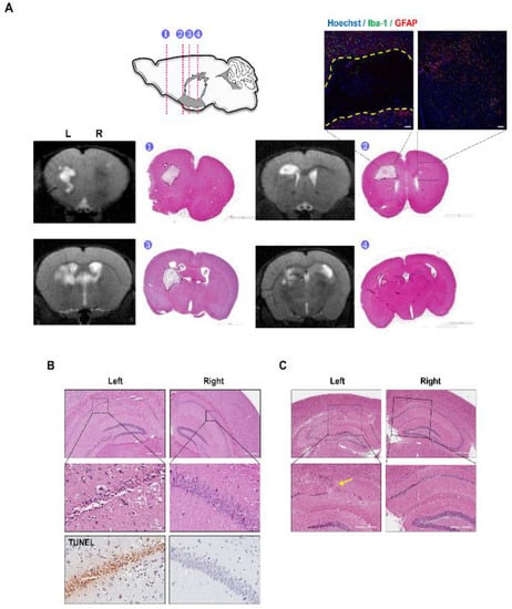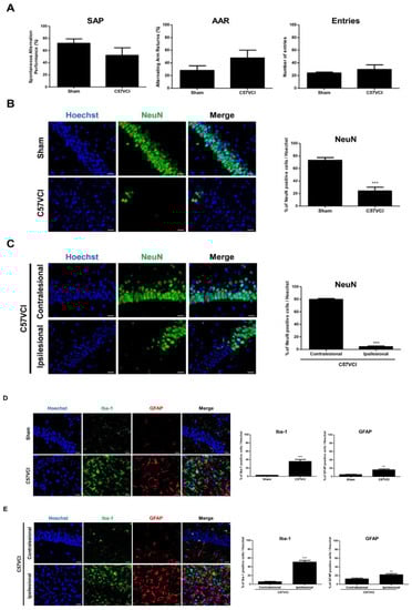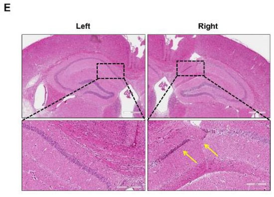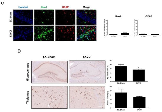 2.3. Decreased Hippocampal Neuronal Density and Increased Iba-1 and GFAP Immunoreactivies Were Observed from the C57VCI Mice